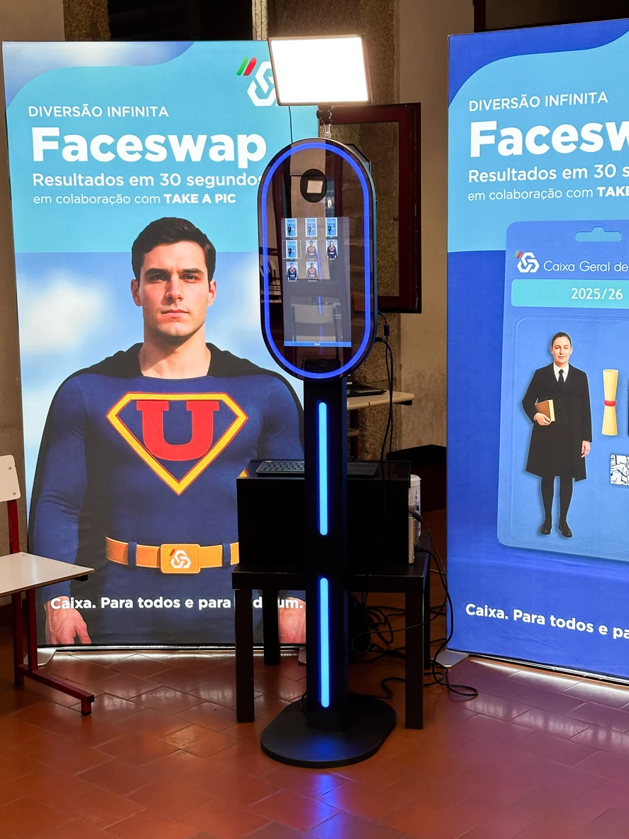 Transforma a experiência com face swap e mudança de cenários automáticos.