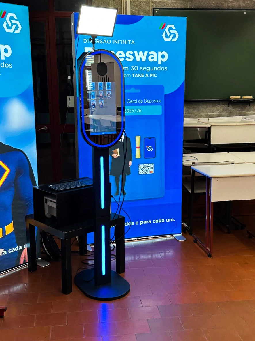 O Selfiebooth LED é a solução perfeita para transformar qualquer evento num verdadeiro sucesso. Com um design moderno, linhas elegantes e uma moldura iluminada por luzes LED, este photobooth destaca-se em qualquer espaço — seja numa festa privada, num evento corporativo ou numa ativação de marca.